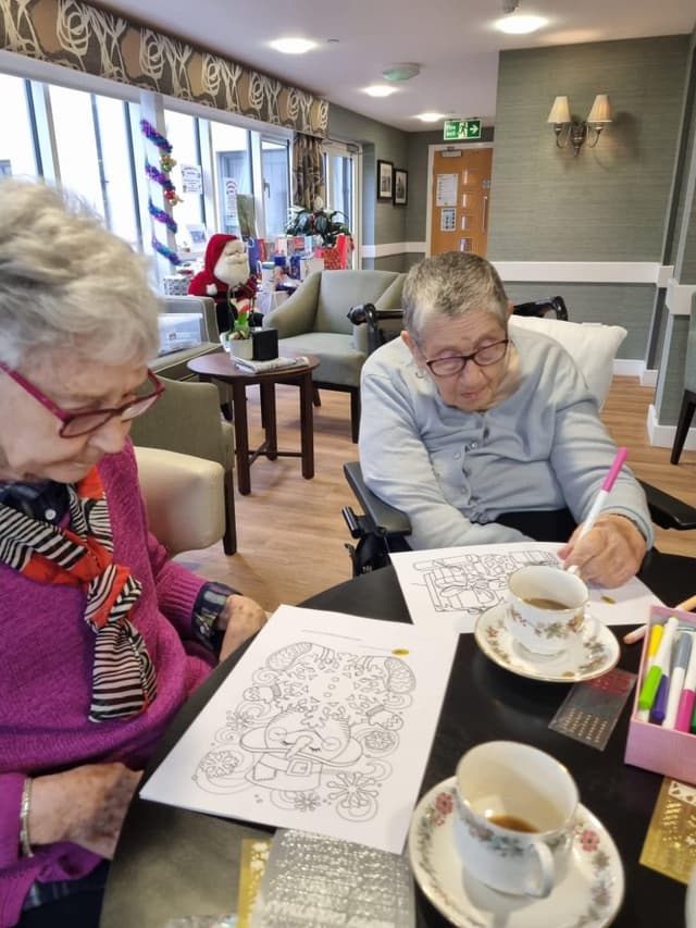Our residents are extremely fond of the arts & crafts sessions we hold throughout the year, but they are extremely well-loved at Christmas time. This month we have held a number of sessions where our residents have participated in colouring, card-making and creating table pieces. We always encourage our residents to get involved in our creative activities as they have immense benefits on their social, mental and physical wellbeing. The residents have a fantastic time, especially when there is tea and biscuits involved!