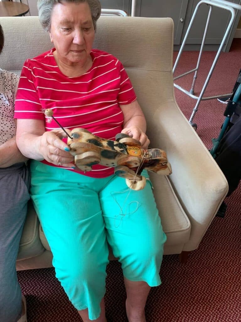 Surrounded by familiar sights like old postcards of Aberdeen, vintage toys, and photo albums filled with black-and-white snapshots, our residents’ faces lit up with smiles. Our ladies enjoyed seeing toys from their youth like a play nurse's hat and a sweet little wooden pull-along dog.